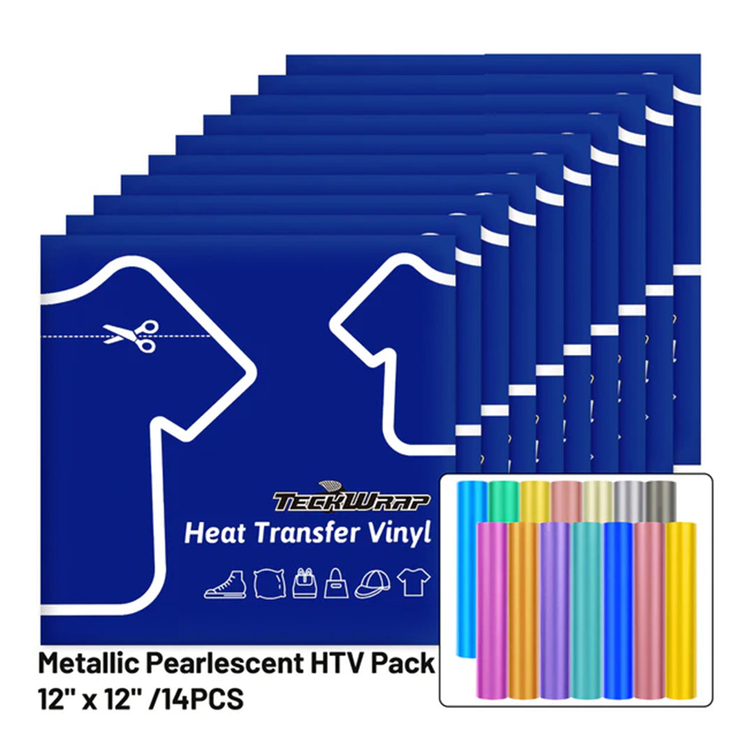 TeckWrap Metallic Pearlescent Heat Transfer Vinyl Sheets – 14 pcs/ 30.5 cm x 30.5 cm